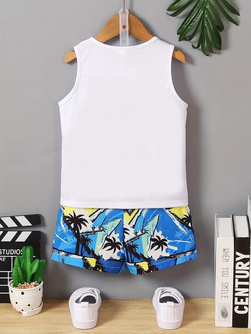 2pcs Boys Casual Beach Holiday Tank Top and Shorts Set - Perfect for Summer Fun