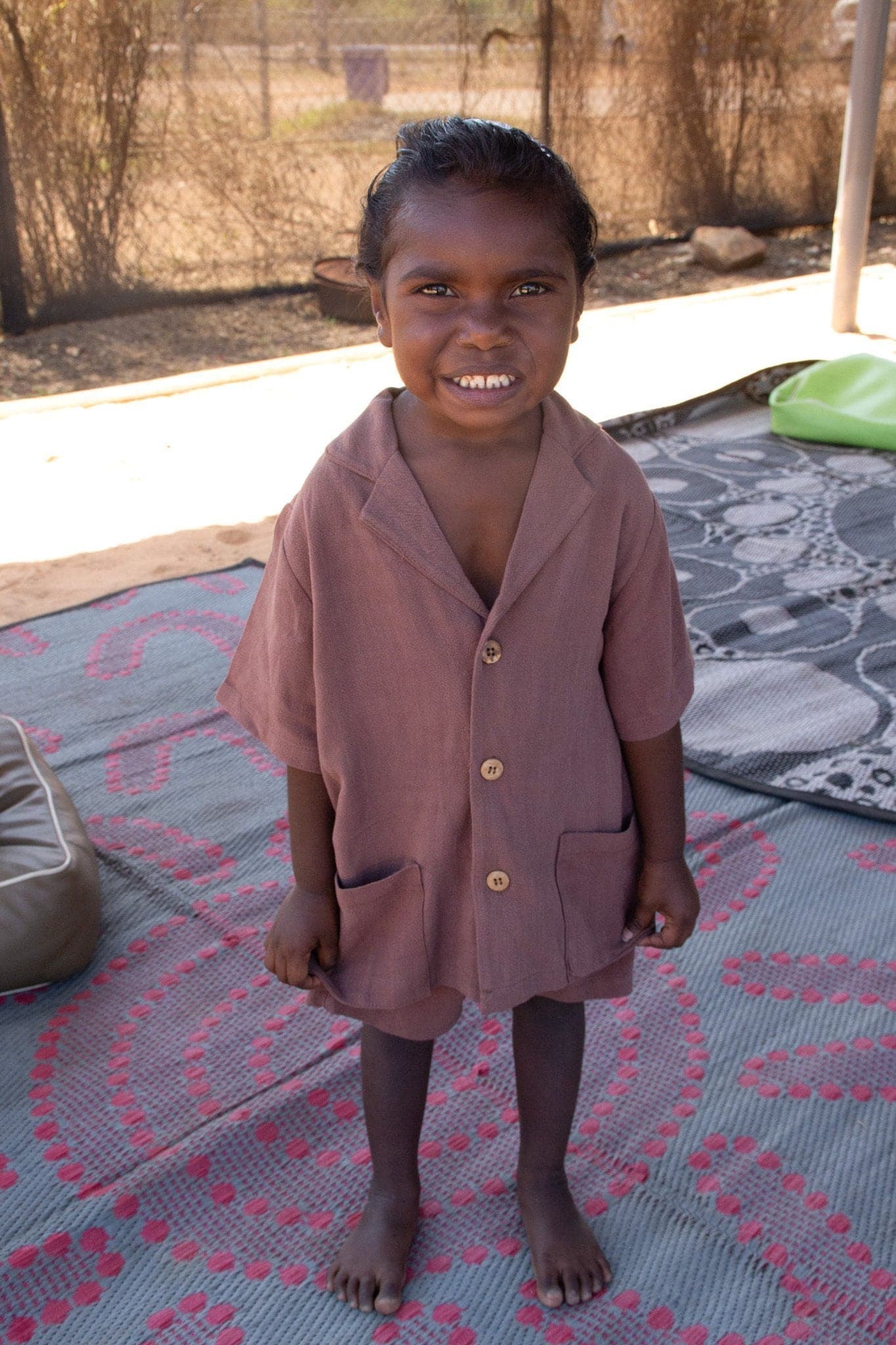 The Shekania set was apart of our latest brand collaboration with Bush Medijina, a group of Warningakalina women based in the remote Groote Eylandt of Northern Territory, Australia  - Shekania is the name of the beautiful girl modelling & her sister is Rekania.