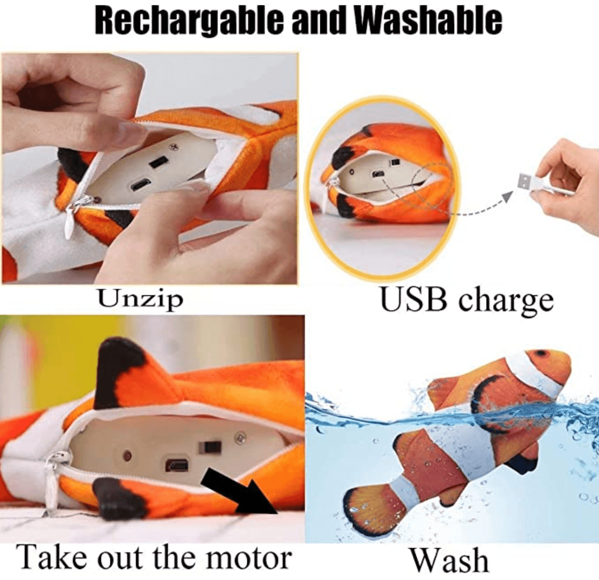 - Electric Flopping Motion: With USB charging cable
